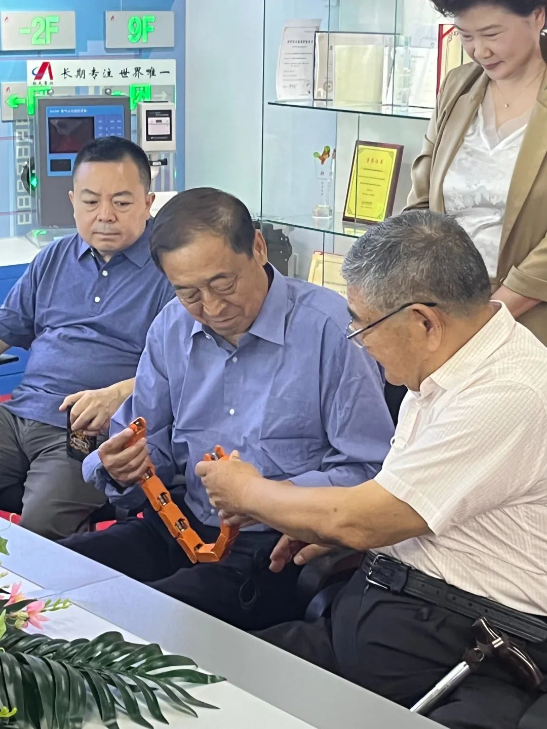 2022年6月30號(hào),欣聞航天常興開(kāi)發(fā)出“電衛(wèi)士”,幾個(gè)年逾七十的北理工校友,由老書(shū)記焦文俊和原北京市副市長(zhǎng)趙鳳桐帶領(lǐng)幾位優(yōu)秀的老師和企業(yè)家來(lái)到公司考察。中國(guó)安防協(xié)會(huì)無(wú)人安全委員會(huì)主任吳志強(qiáng)將軍和航天常興研究院執(zhí)行院長(zhǎng)伍林陪同。
